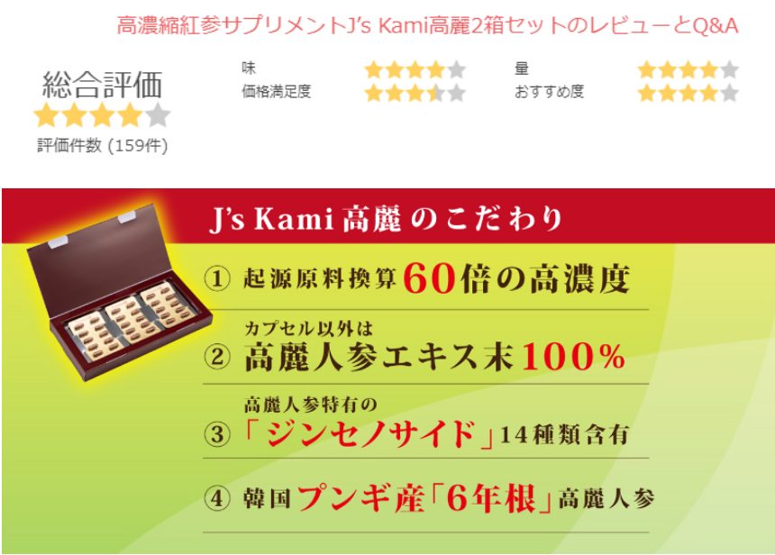 色々検索したら高麗人参が更年期の症状緩和にいいとわかりJ`kami高麗を購入。